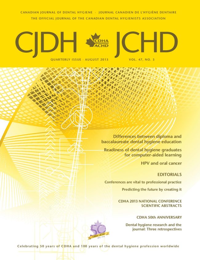 JCHD août 2013 All periodontics documents, Canadian Journal of Dental Hygiene, Article, Periodontics DocumentsBy Sylvie Proulx16 November 2013