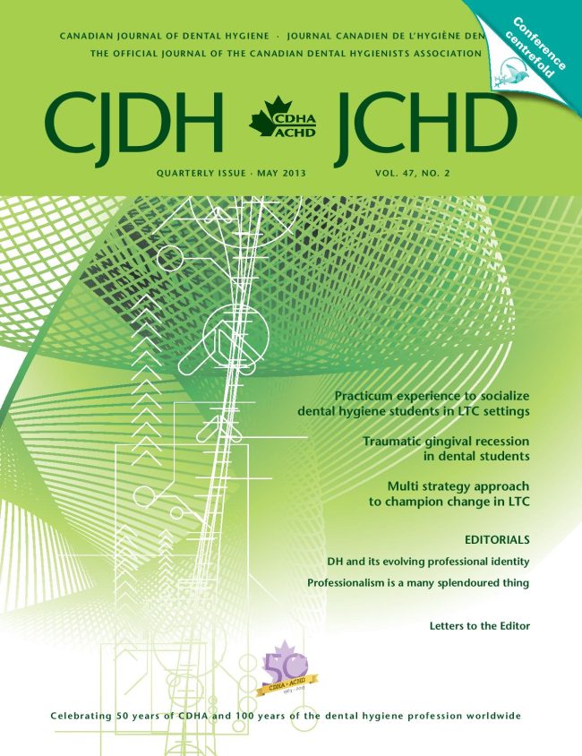 JCHD mai 2013 Article, Periodontics Documents, All periodontics documents, Canadian Journal of Dental HygieneBy Sylvie Proulx16 November 2013