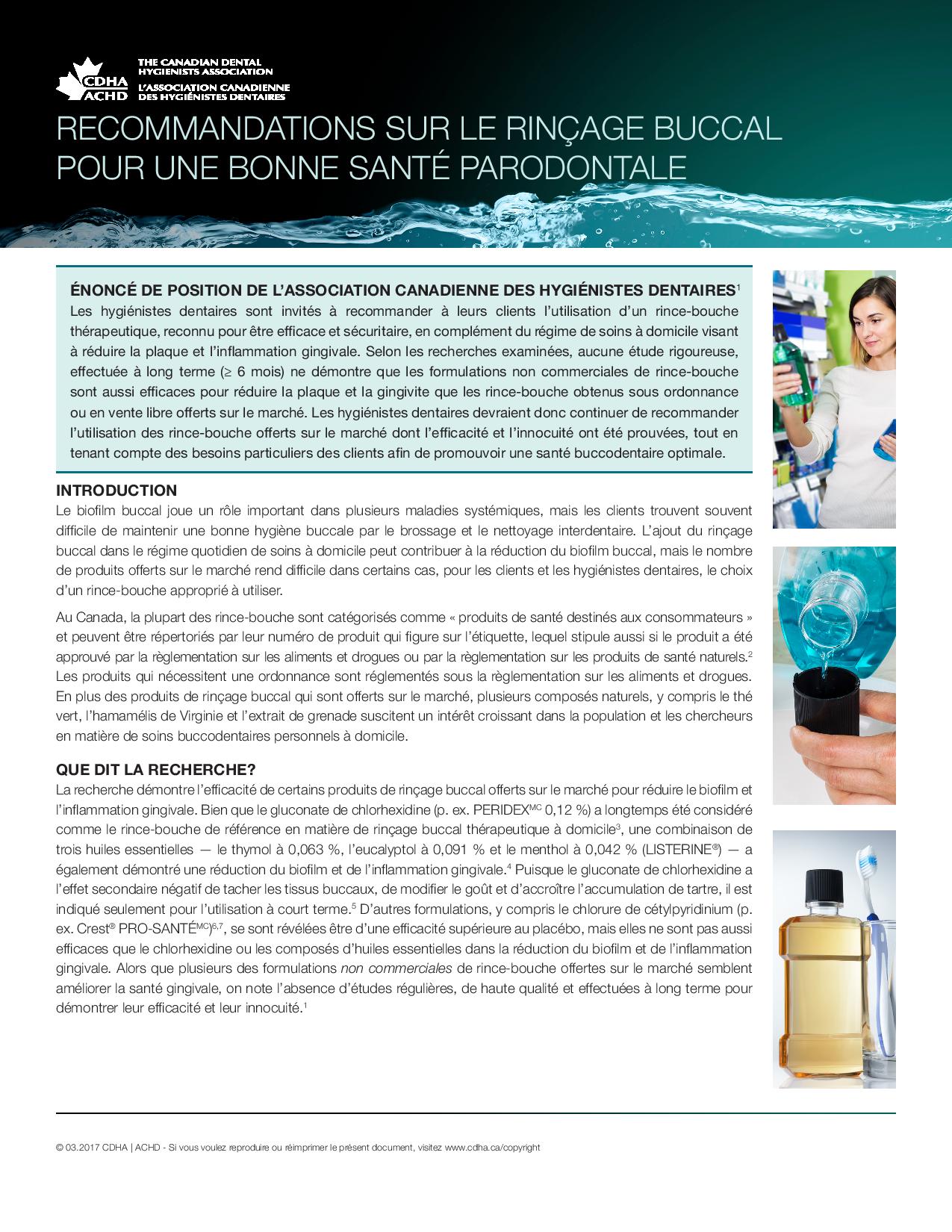 Recommandations sur le rincage buccal…