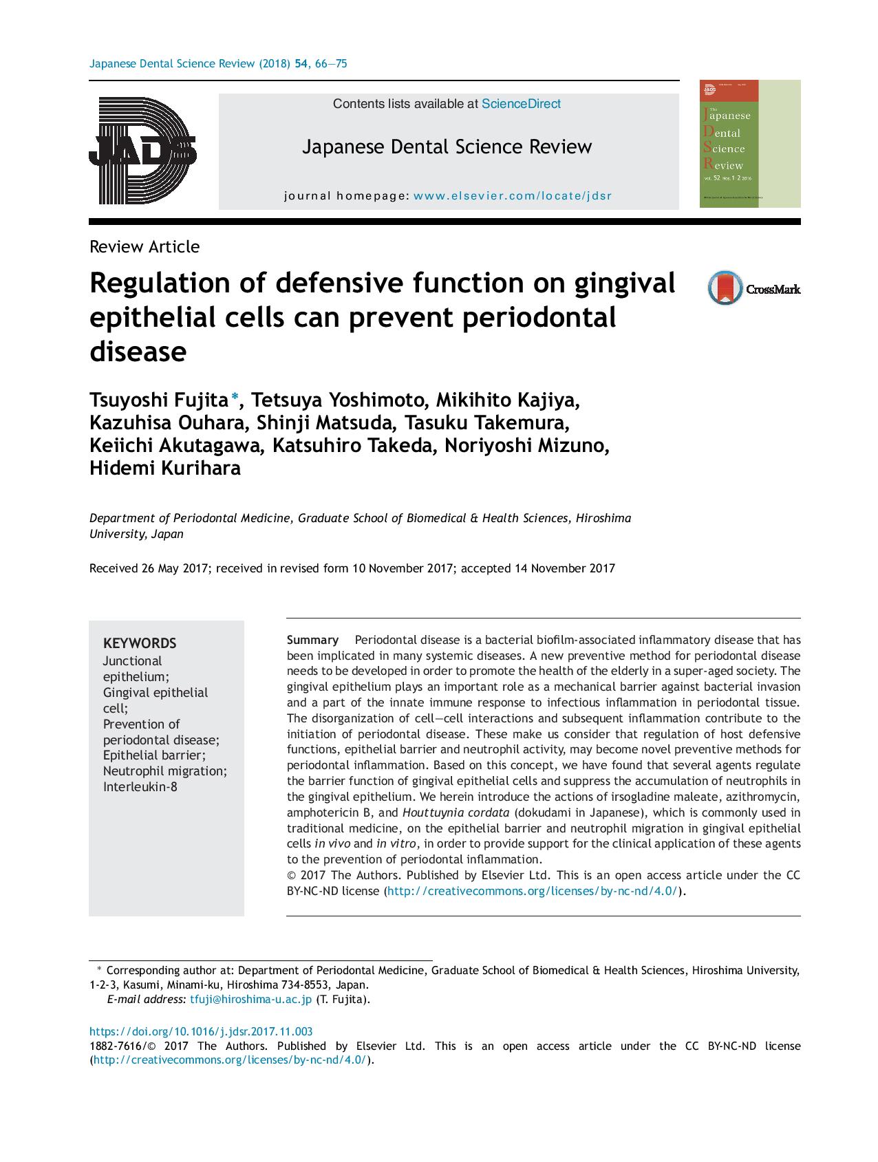 Regulation of defensive function on gingival epitheli…
