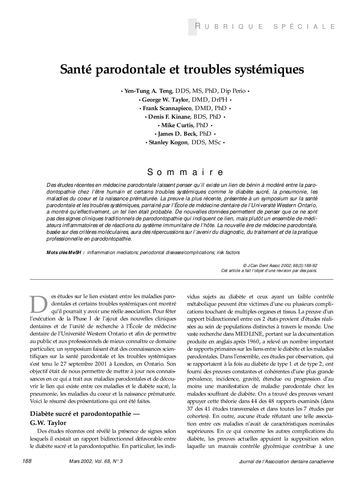 Santé parodontale et troubles systémiques