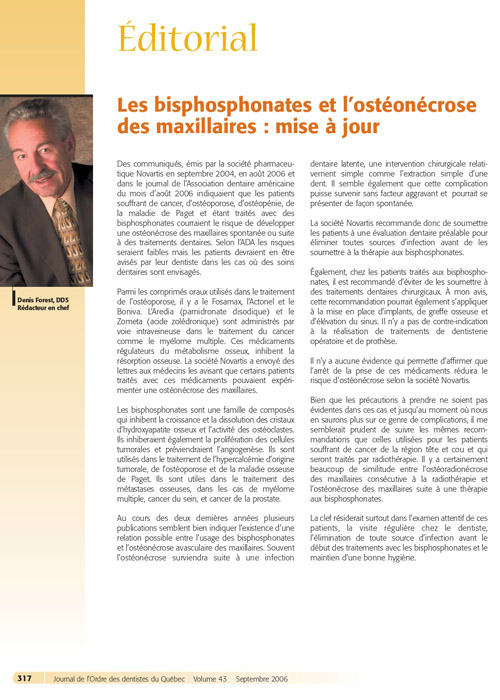 Les bisphosphonates et l’ostéonécrose des maxillaires Article, ODQ, All ODQ articles, Dental healthBy Sylvie Proulx3 September 2020