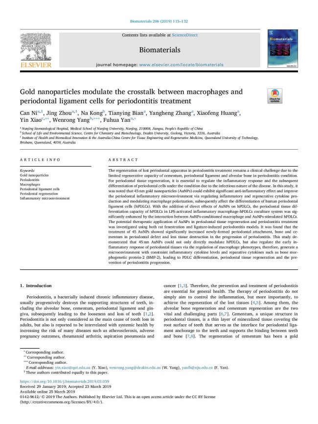 Gold-nanoparticles-modulate-the-crosstalk-between-macrophages-an_2019_Biomat Article, Periodontics Documents, Techniques and tools, All periodontics documentsBy Sylvie Proulx16 November 2020