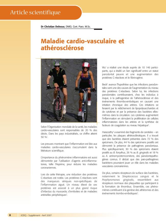 Maladie cardiovasculaire et athérosclérose Article, Periodontics Documents, All periodontics documents, Systemic and cardiovascular diseasesBy Sylvie Proulx17 November 2020